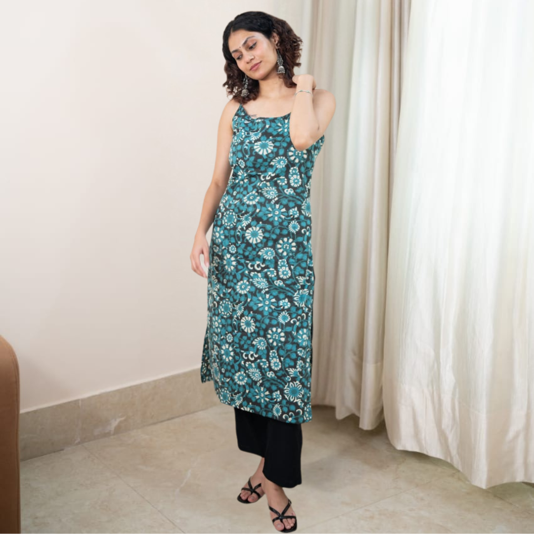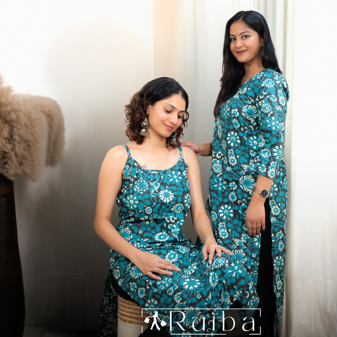 Elevate your ethnic wardrobe with this Green Flower Print Kurti featuring pant style number 2 design. Crafted for a graceful fit, the kurti showcases a soothing green base adorned with delicate floral prints, combining tradition with contemporary style. Paired with matching pants, this ensemble ensures both comfort and elegance, suitable for daily wear or festive occasions. Its breathable fabric and tailored cut provide ease of movement while maintaining a polished look. Perfect for those seeking a refined yet vibrant outfit choice.