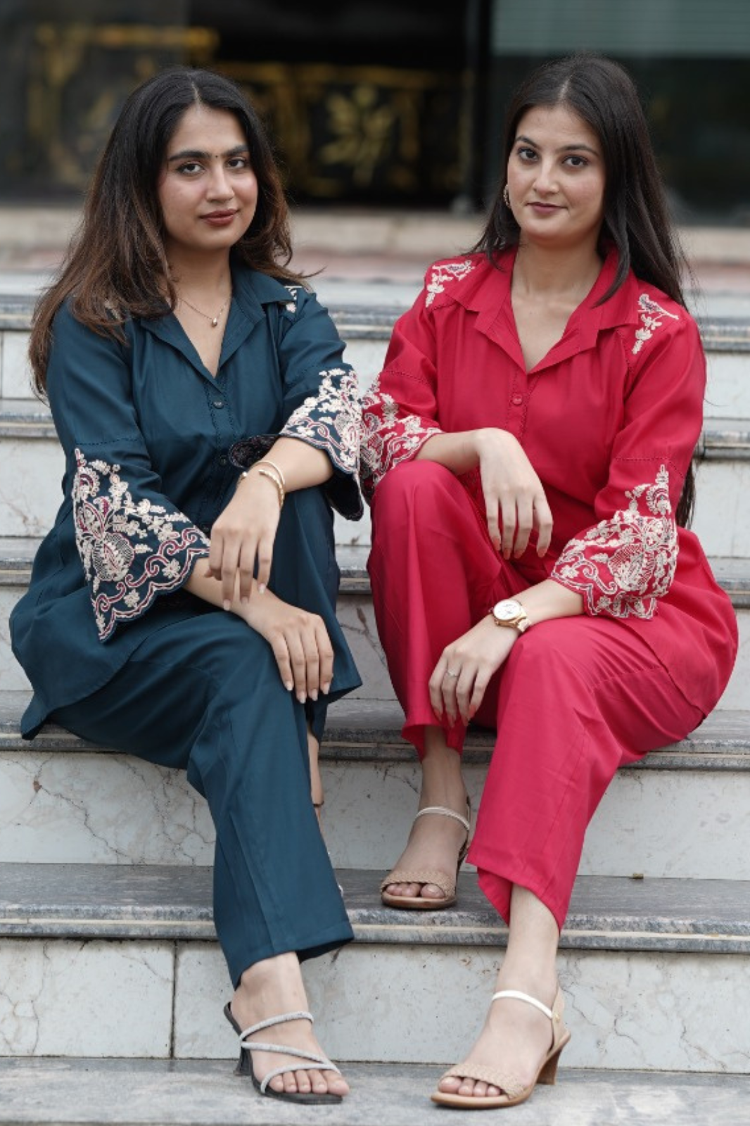 Top: Premium silk fabric with delicate thread embroidery on sleeves & shoulders, adding a graceful touch.